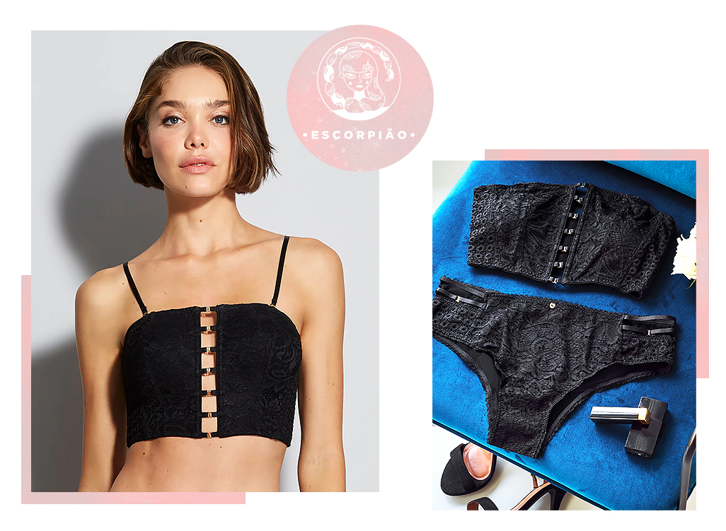 É intensa, apaixonada, tem objetividade, perspectiva e necessita distanciamento das pessoas; ama sua privacidade. É mulher do 8 ou 80, frio ou pelando… Não existe o caminho do meio em sua vida. A lingerie tem que ter um perfume de sedução, renda, preto, tudo que insinue…